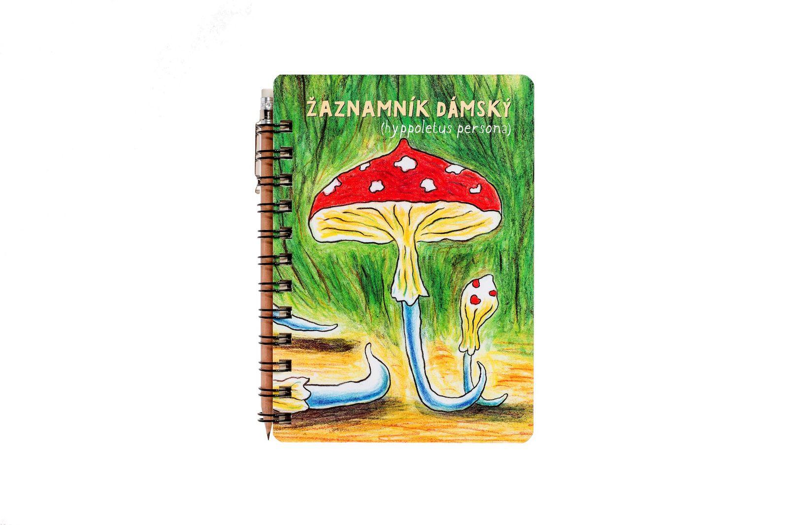Kroužkový blok 13 x 18 cm, s tvrdou, kartonovou přední a zadní stranou s barevným potiskem, počet čistých listů bez linek 50, elastická guma na zavírání, tužka s kovovou sponou a pryží na konci, umístěná v kroužkování.