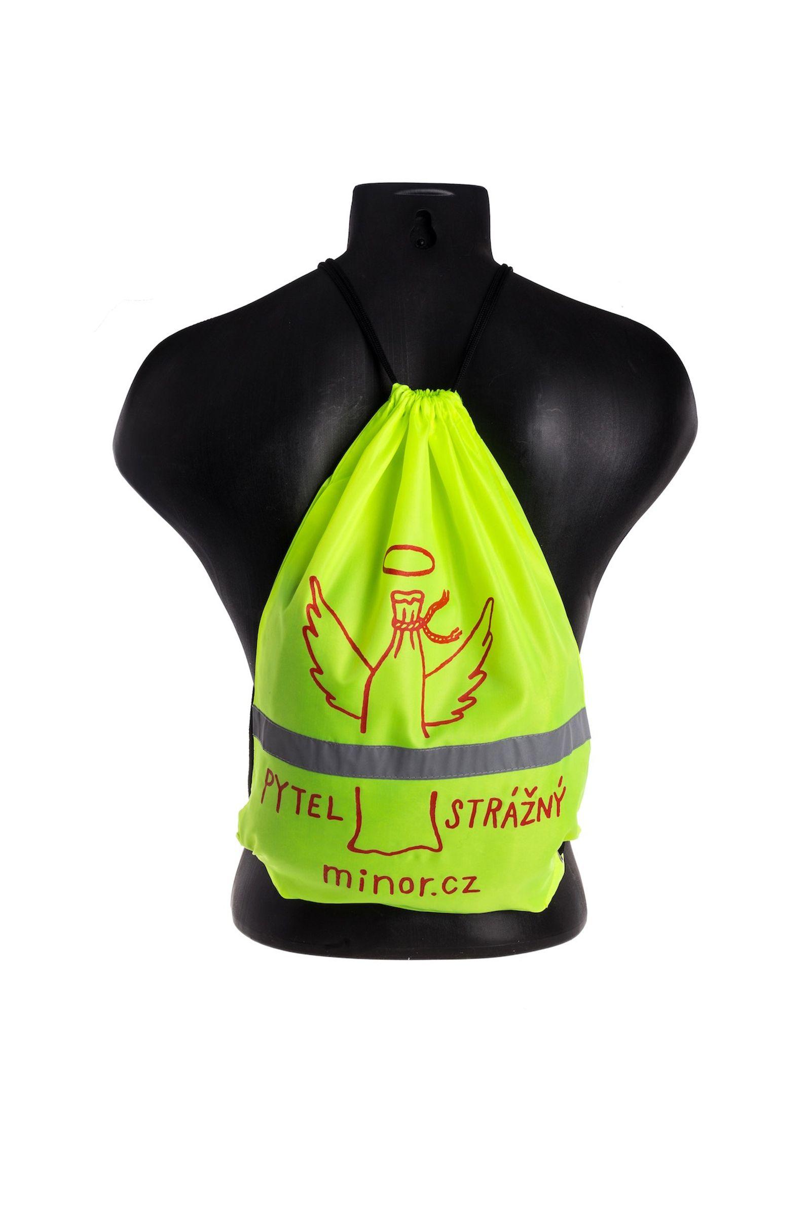 Praktický svítivý pytel 33 x 44 cm, stahovací šňůrkami, na záda či přes rameno. 100% polyester. S andělským motivem na přední straně a s odrazovou páskou uprostřed.
