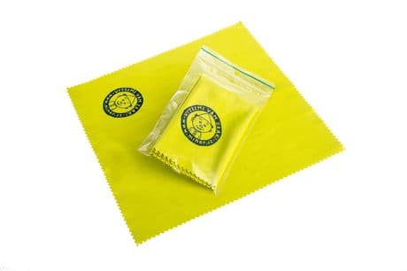 "Nejen na brýle, ale i na mastná sklíčka mobilů a zaprášené obrazovky monitorů. 10 z 11 diváků Minoru doporučují! (Ten 1 nemá brýle, mobil ani počítač)."19 x 19 cm zelenožlutá specální tkanina na čištění brýlí, s modrým kulatým logem v levém spodním rohu. "Vytřeme vám zrak". Úhledně složená v uzavíratelném sáčku.
