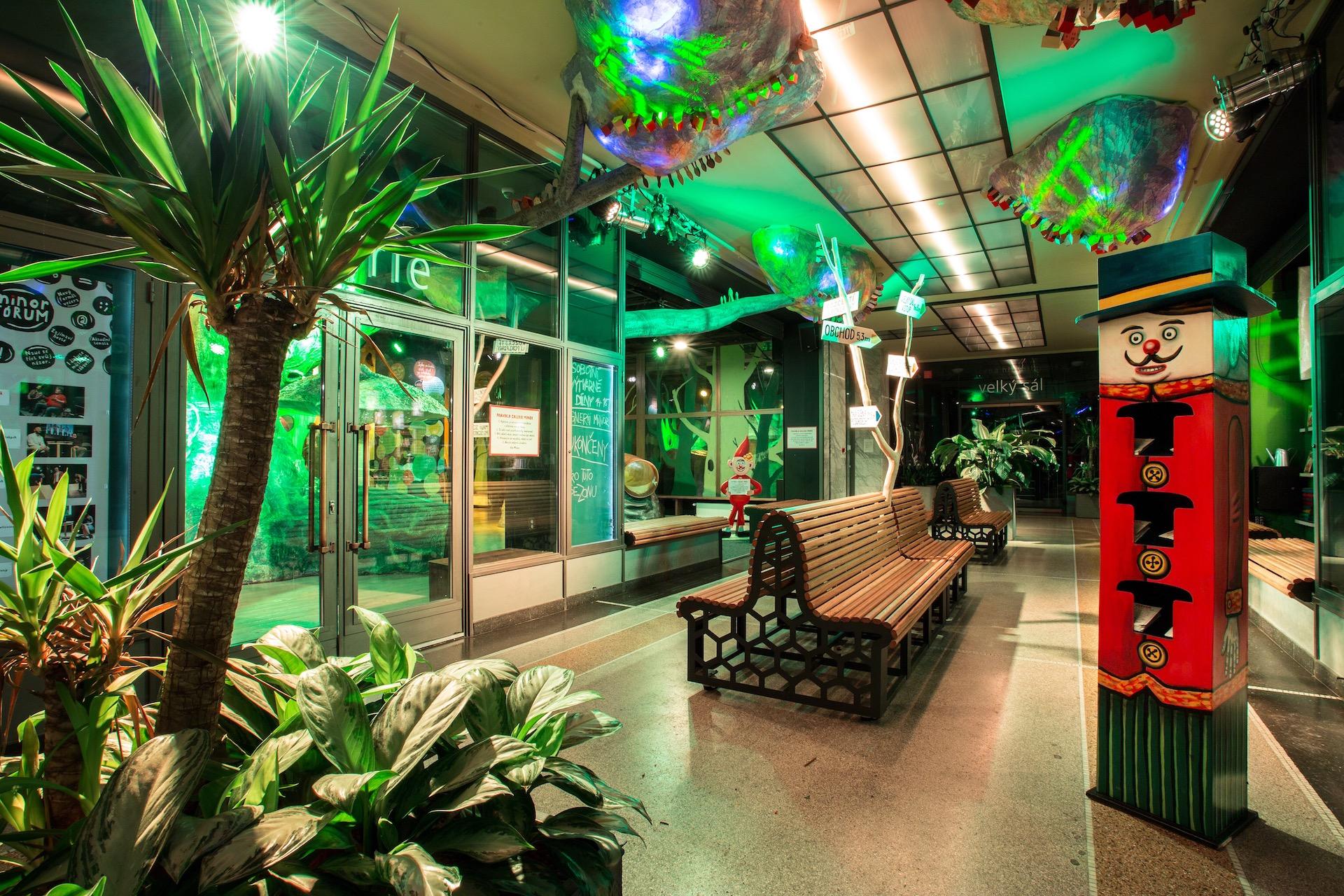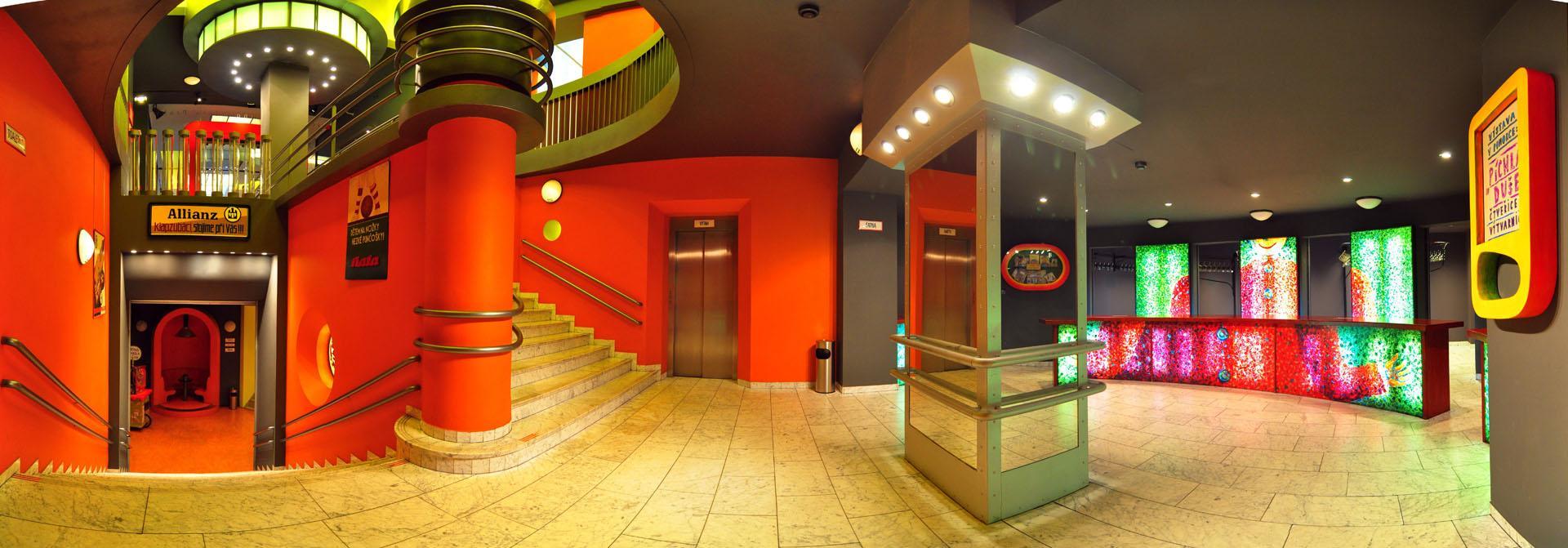 Projekt připravil ateliér ATD v čele s architektem Alešem Kletenským. Designérem interiéru byl Viktor Korejs, který za spolupráce dalších umělců vytvořil barevný, zajímavě členitý prostor, povzbuzující dětskou fantazii. Dalšími spoluautory jsou Barbora, Jakub a Jan Zichovi, kteří se podíleli na vstupu z Dětské pasáže do divadla, pokladně, diváckých šatnách, plechovém panákovi na ocelovém sloupu a baru v prvním podlaží, a dále manželé Jelenovi, kteří zhotovili tavené skleněné reliéfní hlavičky a skleněnou a světelnou mozaiku.